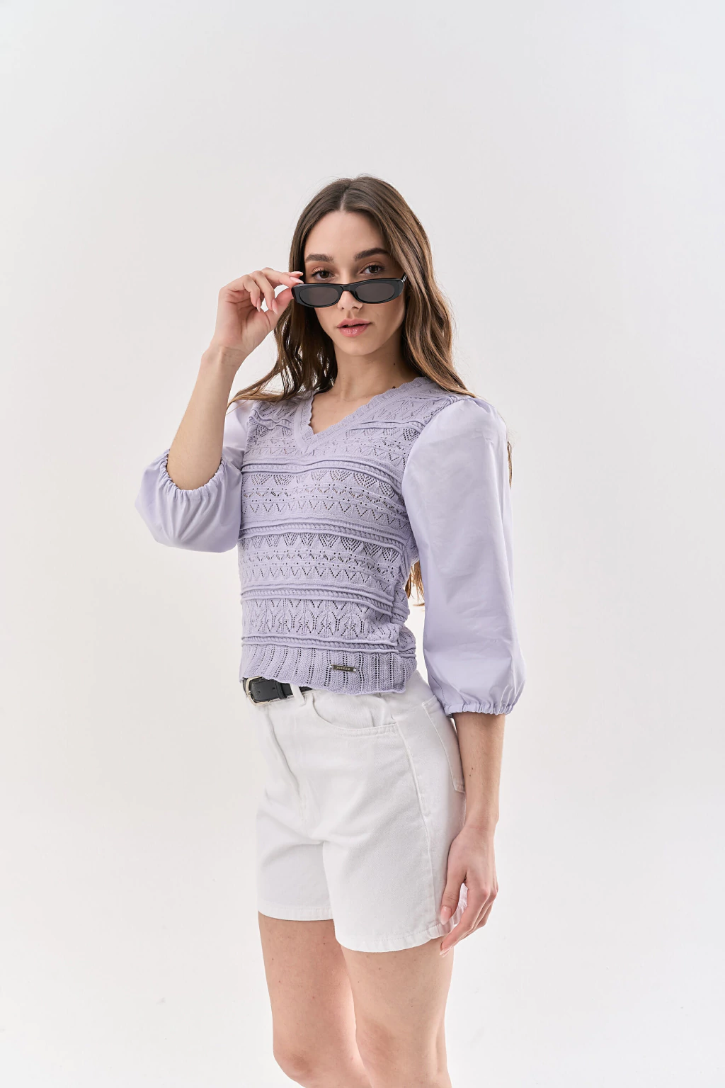 La Camisa Diamond aporta frescura y estilo con su original combinación de materiales. El cuerpo tejido se complementa con mangas de poplin, logrando un mix ligero y actual. Con escote en V, manga 3/4 y puños con elástico, es una prenda cómoda y versátil para looks de verano. Composición: 50% POLIESTER 50% ALGODÓN