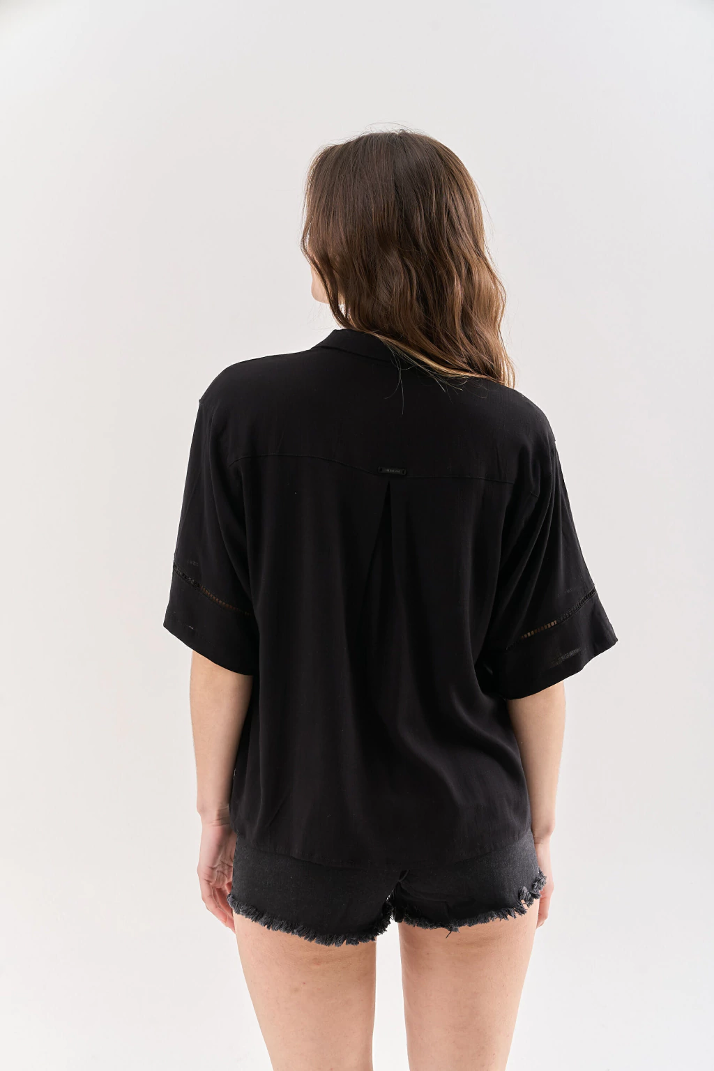 Con una silueta amplia y liviana, la Camisa Moss se convierte en una opción versátil para los días cálidos. Confeccionada en 100% rayón y de talle único, se adapta con suavidad al cuerpo. Los entredos en las mangas suman un detalle delicado y femenino, mientras que los botones a tono completan el diseño con una terminación sutil y prolija.