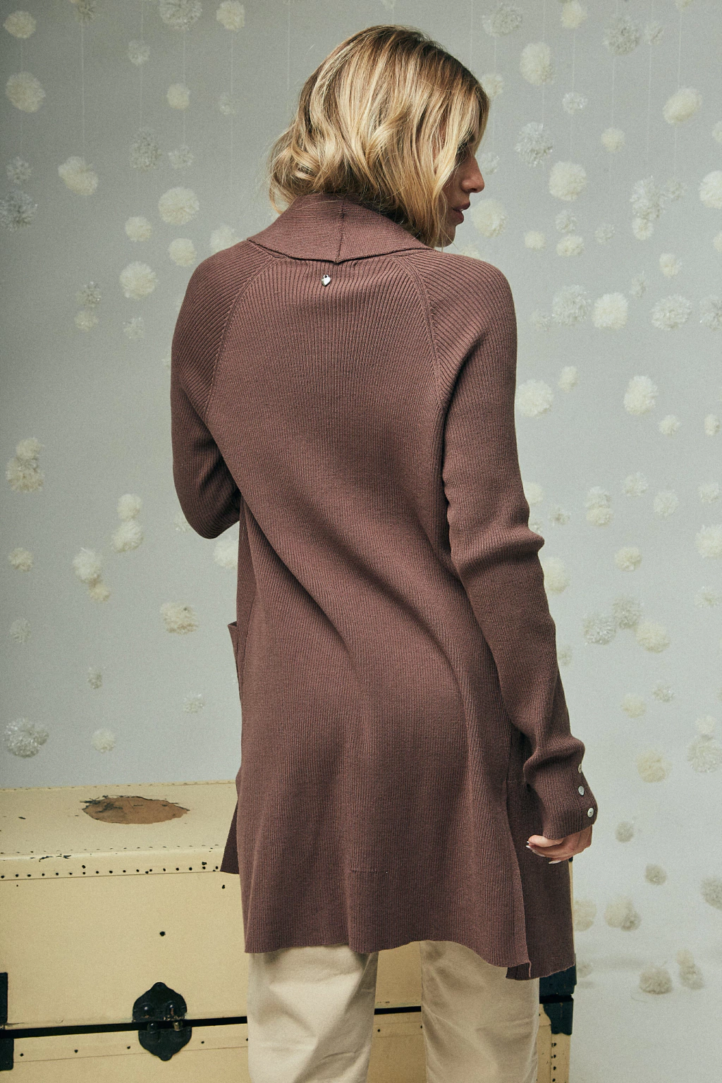 El Cárdigan Lecce combina elegancia y confort en un diseño de corte smoking. Tejido en una mezcla suave de viscosa, poliamida y nylon, se adapta al cuerpo con soltura y aporta estructura gracias a su solapa abierta y botones en los puños. Ideal para la media estación o como abrigo liviano en invierno. Viene en chocolate y gris, colores neutros que van con todo. Una prenda versátil para el día a día o salidas elegantes.
