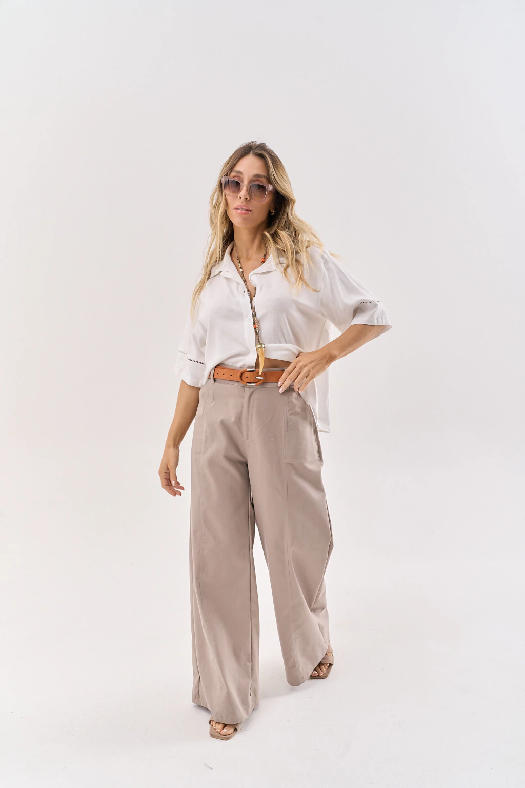 Confeccionado en gabardina, el Pantalón Dune se destaca por su corte wide leg que ofrece comodidad y estilo. Los recortes en el delantero aportan un detalle de diseño moderno, mientras que los bolsillos delanteros y traseros suman funcionalidad a esta prenda versátil y actual.