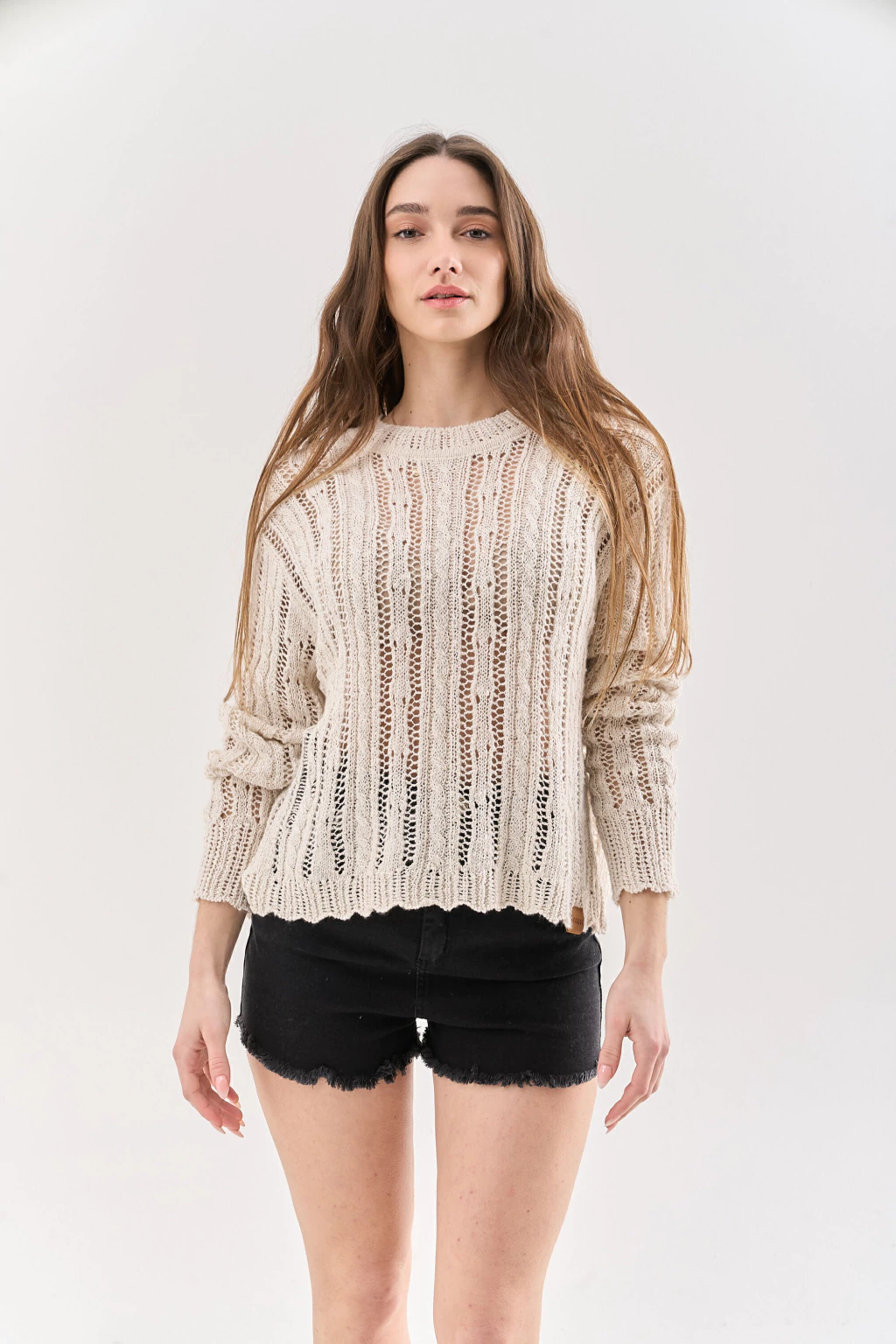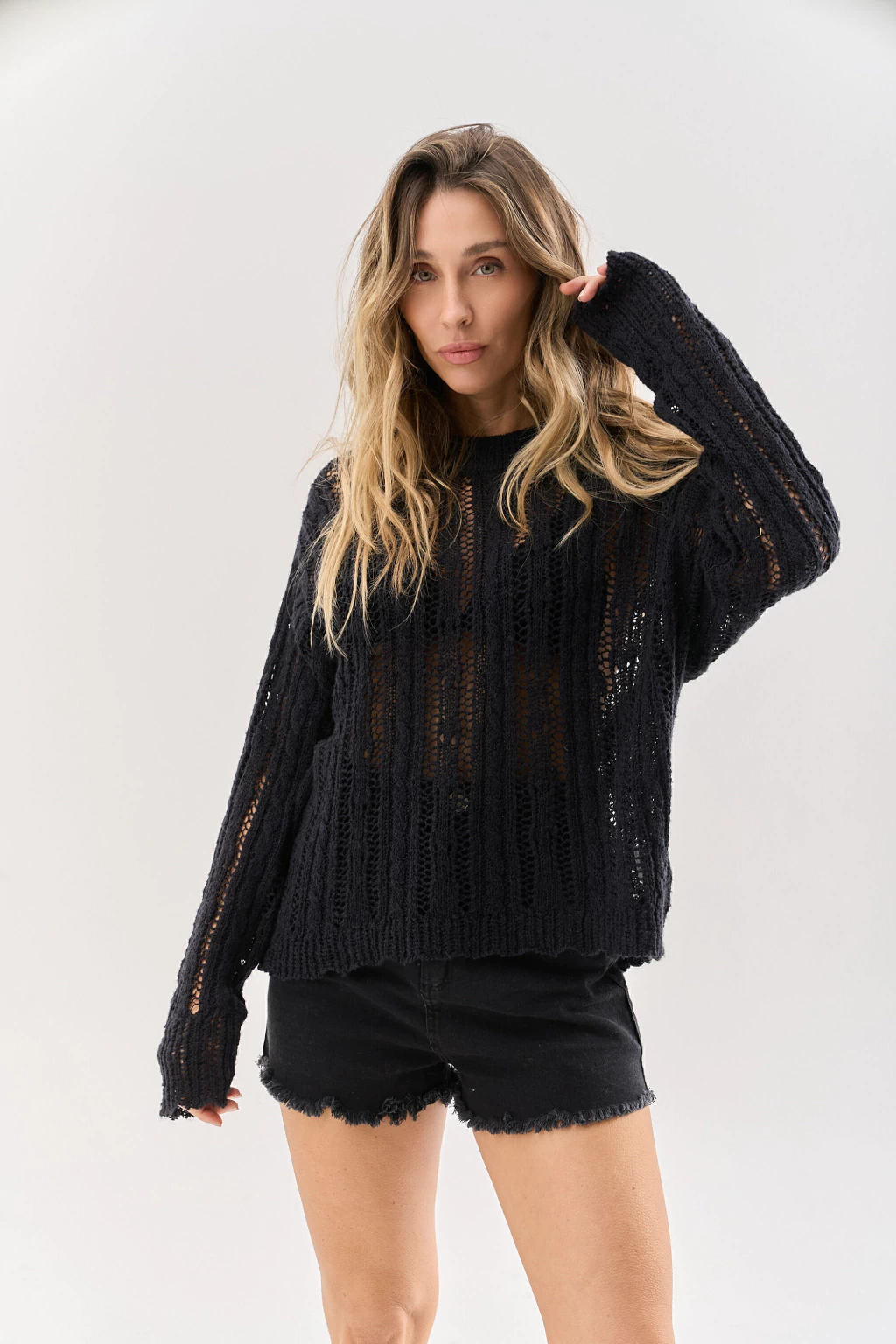 El Sweater Amber esta tejido en flama de algodón, y se destaca por su calce holgado y relajado. Ideal para lograr un look cómodo y actual. Su textura liviana y natural lo convierte en un infaltable para los días de verano.